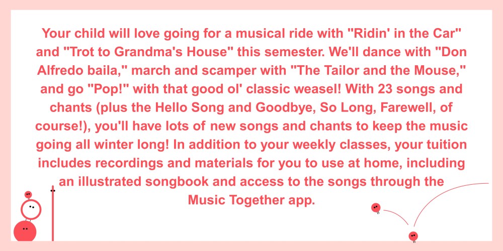 In a Mixed-Age Music Together® class, you will find a diverse community of children and their families singing, dancing, and playing rhythm instruments together.