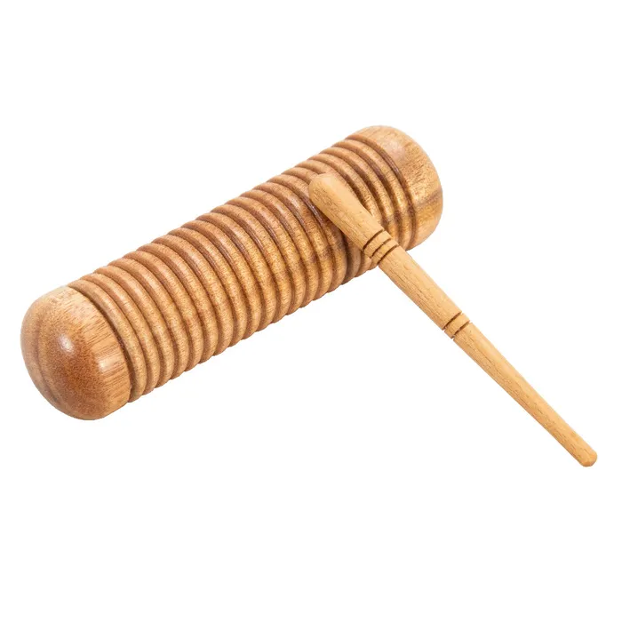 This Westco natural wood guiro shaker is a two-in-one instrument that is a great option for children. Approximately 5.75" x 1.75", it can be played like a guiro by using the included striker to scrape the sides or by shaking it like a shaker.